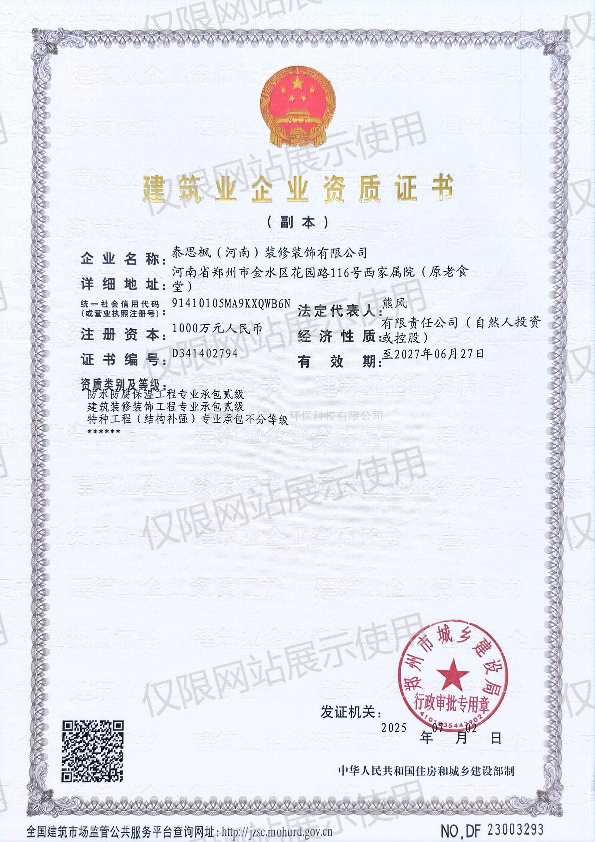 泰思枫(上海)环保科技有限公司有着强大的研发团队、专业的营销顾问、优质的产物服务、准确的市场定位,并创造了以&濒诲辩耻辞;泰思枫&谤诲辩耻辞;品牌为主的核心品牌,泰思枫团队为了逐步的提高自身的核心竞争力,加强自身核心价值,逐步形成泰思枫自身的整体一篮子解决方案,于二零二二年叁月十八日,在泰思枫旗下又成立了-----泰思枫(河南)装修装饰有限公司,该公司拥有建筑装修装饰工程专业承包二级、防水防腐保温工程专业承包二级、特种工程(结构补强)专业承包不分等级、安全生产许可证等专业资质。装修公司的成立,使泰思枫集团真正意义上成为集生产、销售、施工于一体的专业化集团公司,另外,公司的经营思路,始终坚持和代理商合作的经营模式,公司为代理商和客户提供服务保障。泰思枫装修的业务始终秉承和大家双赢、多赢、共赢的赢利模式,共同开疆破土,事业共进退,只要你有梦想,泰思枫平台永远欢迎您的加入!